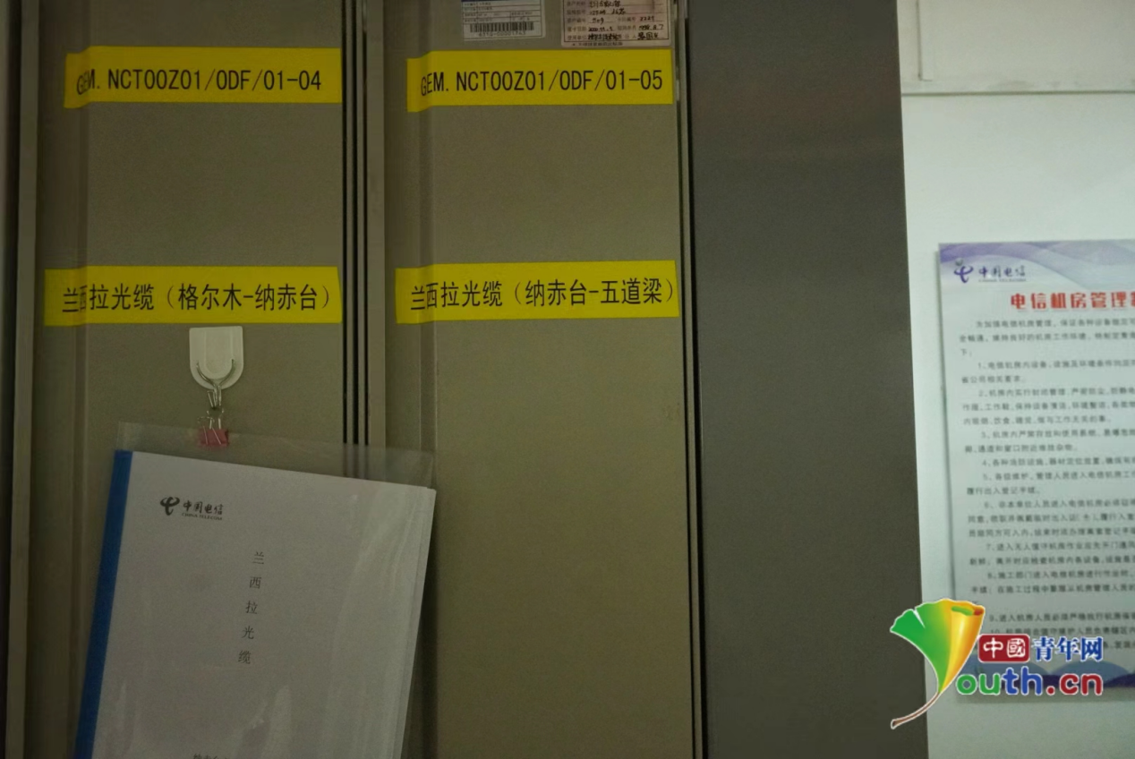 納赤臺機房蘭西拉光纜機柜?!≈袊嗄昃W記者 曹迪攝