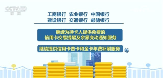 根據公告,六家銀行將降低銀行承兌匯票手續費、免收個人存款賬戶對賬單打印手續費、免收商業匯票工本費、免收持卡人轉出信用卡溢繳款至境內本人本行賬戶手續費,并承諾對企業和個人客戶安全認證工具工本費按不高于成本價收取。繼續為持卡人提供免費的信用卡交易提醒及余額變動通知服務,繼續提供信用卡普卡和金卡年費補刷服務等。