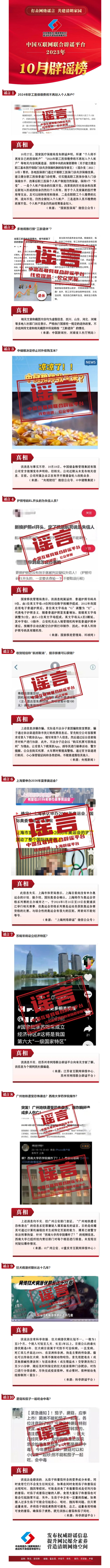 打擊網絡謠言 共建清朗家園 中國互聯網聯合辟謠平臺2023年10月辟謠榜