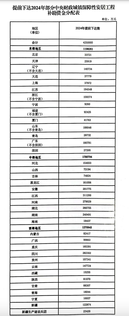 財政部:提前下達2024年部分中央財政城鎮保障性安居工程補助資金預算
