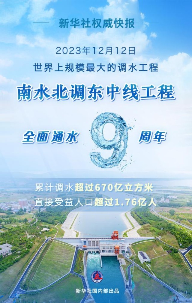 南水北調東中線工程全面通水9周年 累計調水超過670億立方米