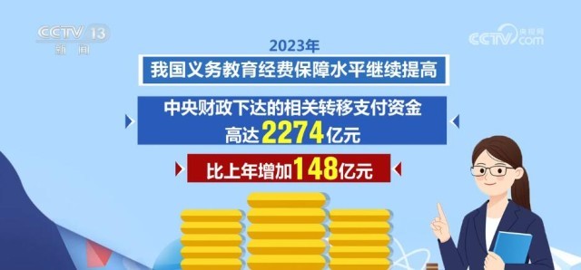 2023年,我國義務教育經費保障水平繼續提高,中央財政下達的相關轉移支付資金高達2274億元,比上年增加148億元。2023年,一系列義務教育重大工程項目繼續實施,讓中小學辦學條件不斷優化。其中,義務教育薄弱環節改善與能力提升項目中央安排330億元,支持各地義務教育學校標準化建設。