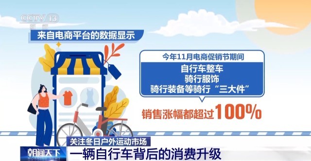 來自電商平臺的數據顯示,今年11月電商促銷節期間,自行車整車、騎行服飾、騎行裝備等騎行“三大件”的銷售漲幅都超過100%。其中公路自行車暴漲300%、自行車碼表及配件增長230%。