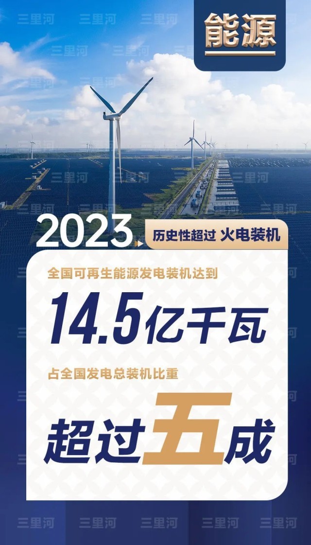 2023年,全國可再生能源發電裝機達到14.5億千瓦,占全國發電總裝機比重超過五成,歷史性超過火電裝機。