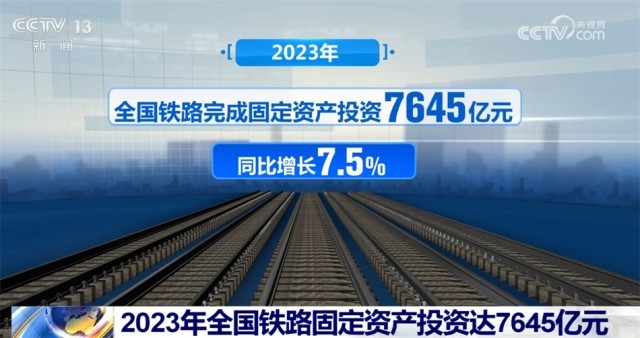 數據顯示,2023年,全國鐵路完成固定資產投資7645億元、同比增長7.5%。