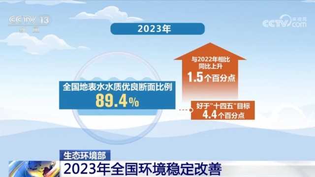 據生態環境部,2023年全國地表水水質優良斷面比例為89.4%,與2022年相比上升了1.5個百分點;長江、黃河干流全線水質穩定保持在二類;全國地下水一類至四類水質點位比例為77.8%,同比上升0.2個百分點;全國近岸海域優良海水水質面積比例為85%,同比上升3.1個百分點。