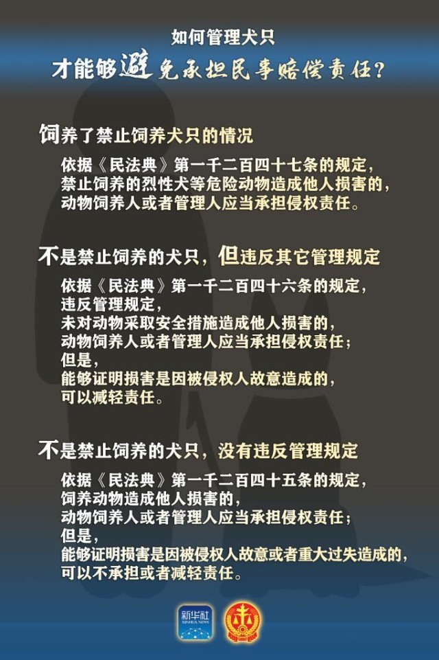 “據(jù)統(tǒng)計,僅就養(yǎng)犬看,2022年中國城鎮(zhèn)犬只數(shù)量為5119萬只。實踐中,致人嚴重損害的主要是烈性犬等危險犬種。”最高人民法院民一庭庭長陳宜芳介紹,《民法典》《中華人民共和國治安管理處罰法》《中華人民共和國動物防疫法》以及相關地方法規(guī)規(guī)章等都對犬只飼養(yǎng)人、管理人應當履行的義務作出了規(guī)定。