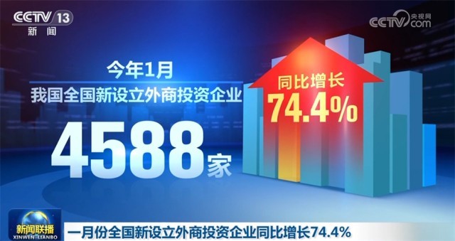 今年1月,我國全國新設立外商投資企業4588家,同比增長74.4%。制造業實際使用外資金額增長20.5%,其中高技術制造業實際使用外資增長40.6%。