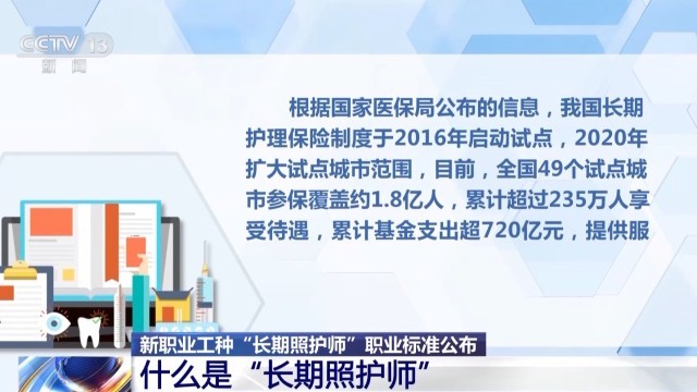 記者從國家醫保局了解到,長期照護師是國家醫保局為穩步推進長期護理保險制度建設,在人力資源社會保障部支持下新設置的一個職業工種。