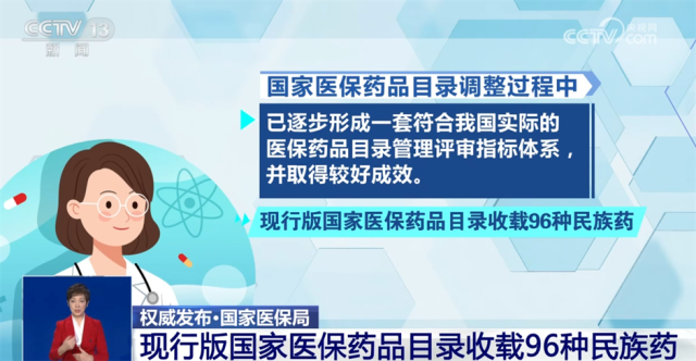 國家醫保局表示,少數民族醫藥是中醫藥的重要組成部分,國家高度重視少數民族醫藥發展,重視民族醫藥的科學研究和開發利用。現行版國家醫保藥品目錄收載96種民族藥。