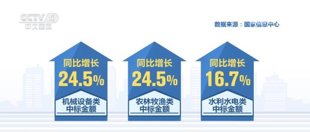 在投資方面,今年1、2月份,與工程項目投資立項、建設相關的指標較去年同期增長明顯。國家信息中心監測數據顯示,今年1—2月全國項目投資中標金額同比增長9.1%。其中,機械設備類、農林牧漁類、水利水電類等中標金額分別同比增長24.5%、24.5%、16.7%。可以看出,在多項支持政策的共同推動下,我國制造業重點行業投資持續向好,民生補短板投資力度不斷加大。