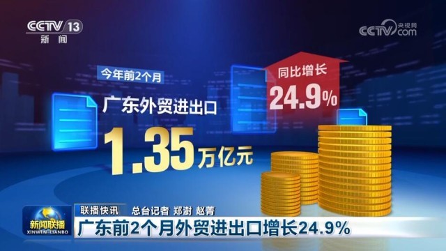 今年前兩個月,廣東外貿進出口1.35萬億元,同比增長24.9%。其中,出口8859.4億元,增長26.8%;進口4624億元,增長21.5%。其中,民營企業占比提升,前兩個月,廣東民營企業進出口占廣東進出口總值的63.8%。