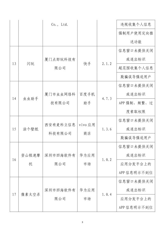 央視網消息:據工業和信息化部網站消息,工業和信息化部信息通信管理局3月14日公布《關于侵害用戶權益行為的APP(SDK)通報(2024年第2批,總第37批)》: