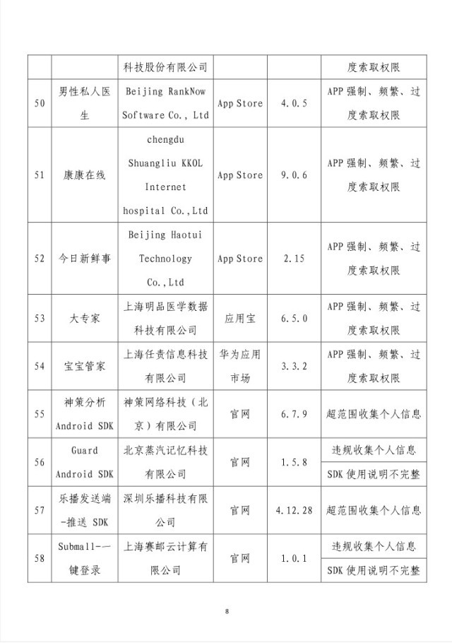 上述APP及SDK應按有關規定進行整改,整改落實不到位的,工業和信息化部將依法依規組織開展相關處置工作。
