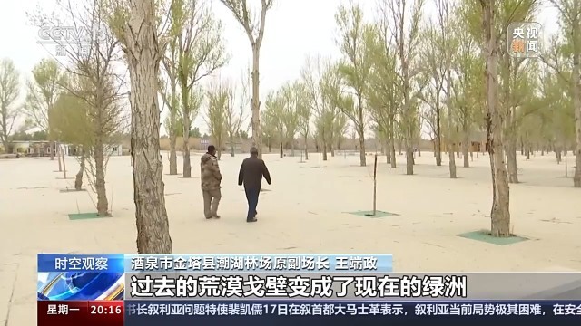 甘肅酒泉金塔縣潮湖林場(chǎng)副場(chǎng)長 王端政:過去的沙進(jìn)人退變成了現(xiàn)在的人進(jìn)沙退,過去的荒漠戈壁變成了現(xiàn)在的綠洲,現(xiàn)在金塔的生態(tài)環(huán)境得到了很大的改善。