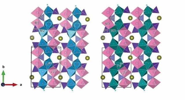 褐磷釩鐵鉛石(a)和綠磷鐵鉛石(b)的晶體結構圖。西北大學供圖