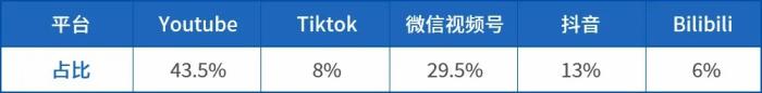 短視頻賬號方面,近年來,華文媒體在短視頻領域的業務迅猛發展。據統計,僅YouTube、TikTok、微信視頻號、抖音、Bilibili五個平臺,已經有超過500個華文媒體賬號,分布情況如下: