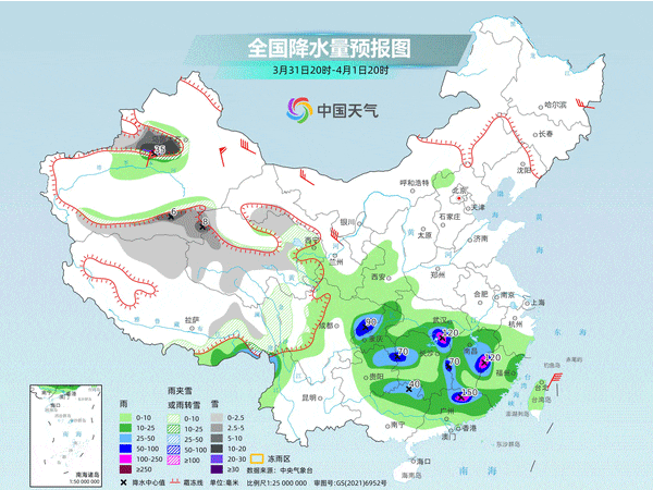 下周,南方天氣的還有一個關鍵詞是降雨。兩輪降雨過程接連來襲,分別會出現在4月1-3日、4-6日,降雨的同時強對流天氣多發。
