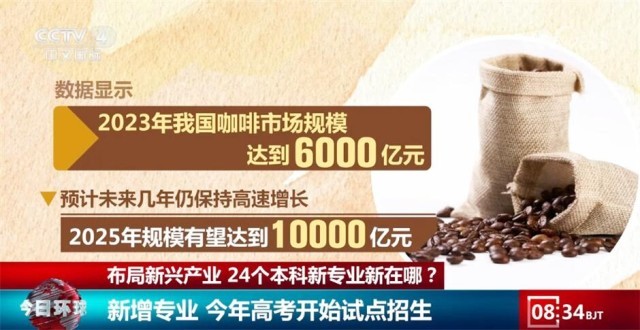 那么,這些新專業(yè)到底會(huì)講授什么內(nèi)容呢?總臺(tái)記者在云南農(nóng)業(yè)大學(xué)采訪時(shí)發(fā)現(xiàn),新增設(shè)的咖啡科學(xué)與工程專業(yè)今年計(jì)劃招收60名學(xué)生。2023年,我國咖啡市場規(guī)模達(dá)到6000億元,預(yù)計(jì)到2025年,規(guī)模有望達(dá)到10000億元。而與此同時(shí),在幾大招聘網(wǎng)站上,咖啡培訓(xùn)師、咖啡師主管等崗位仍有大量空缺。