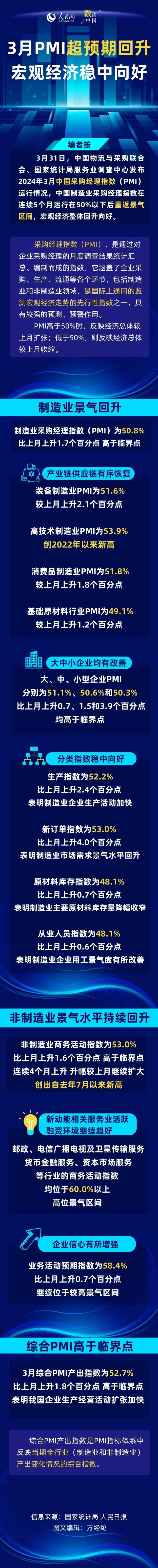 數讀中國|3月PMI超預期回升 宏觀經濟穩中向好