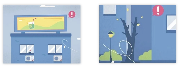 遠離安裝不牢的廣告牌、樹干干枯的行道樹,以及擺有雜物的居民樓,以免高空墜物發生意外。