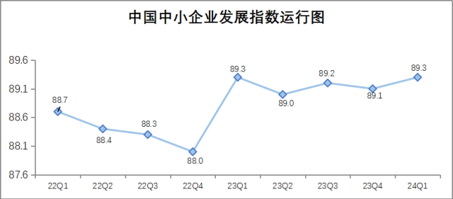 中國中小企業協會今天(9日)發布,一季度中國中小企業發展指數為89.3,比去年四季度上升0.2點。