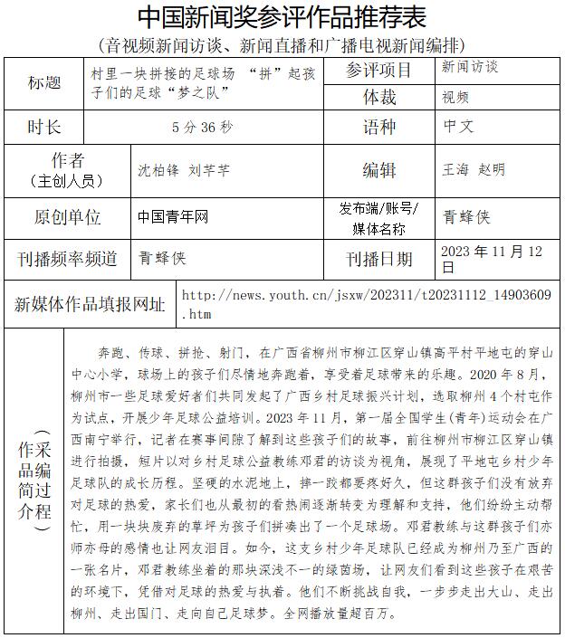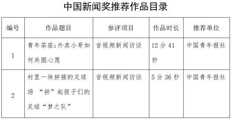 中國青年報社推薦參評第34屆中國新聞獎音視頻新聞訪談、音視頻新聞直播等作品專項初評公示