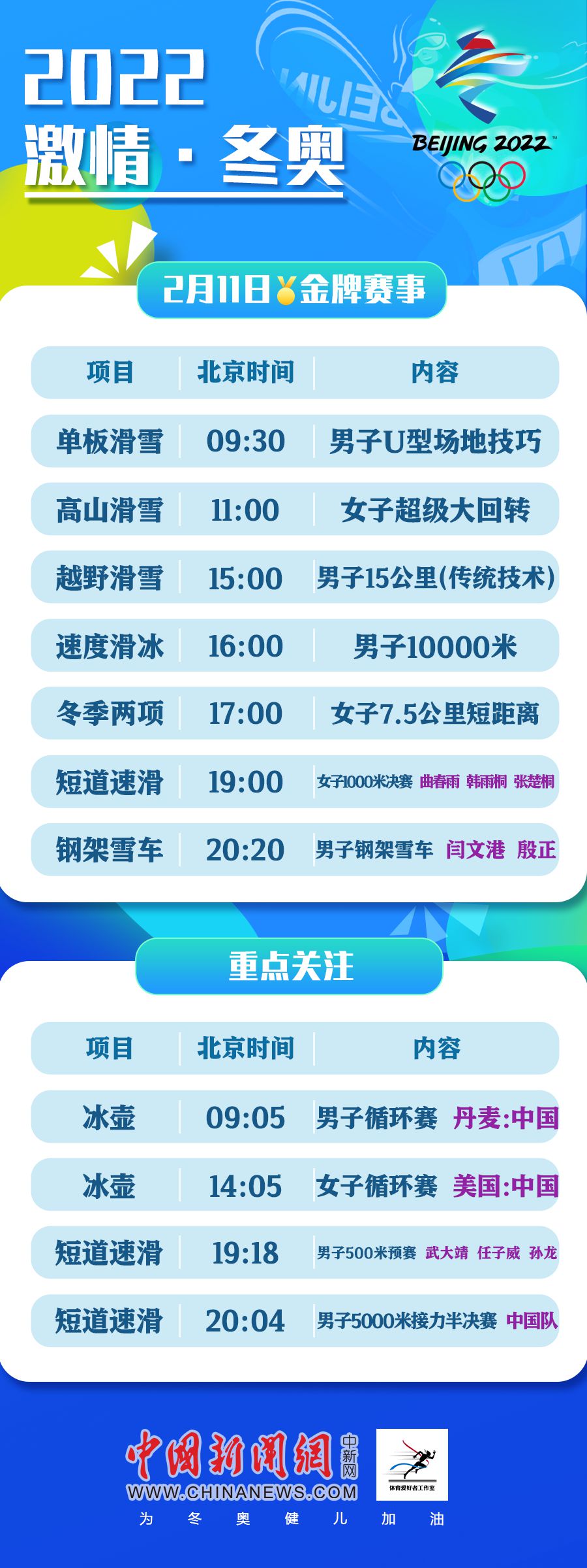 中新網2月10日電 北京冬奧會11日將產生7枚金牌,中國選手閆文港、殷正有望在男子鋼架雪車賽場帶來驚喜。此外,中國短道速滑隊全面出擊,曲春雨、韓雨桐、張楚桐將在女子1000米項目上力爭佳績,武大靖將開啟男子500米的衛冕之旅。