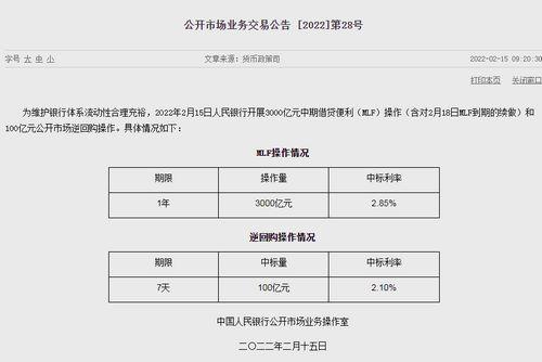 中新財經2月15日電 據中國人民銀行官網消息,為維護銀行體系流動性合理充裕,2022年2月15日人民銀行開展3000億元中期借貸便利(MLF)操作(含對2月18日MLF到期的續做)和100億元公開市場逆回購操作。(完)
