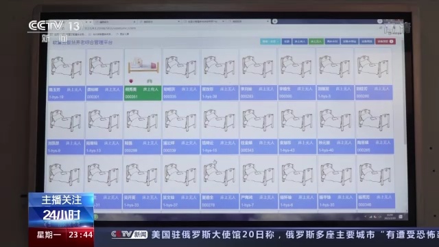 這種養老新模式還運用了智能新技術,通過床上這個睡眠檢測儀,養老機構即時遠程檢測束阿姨的睡眠狀況。