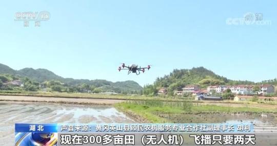 在襄陽宜城小河鎮的插秧基地,6臺高速插秧機在田里穿梭,全市20萬畝水稻實現了統一品種、機械插秧,占水稻種植面積的36%;在黃岡英山,當地組織農技人員通過無人機飛播、機械化插秧等方式將先進實用技術送到田邊地頭,護航水稻生產。