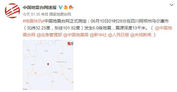 據(jù)國家地震臺網(wǎng)官方微博消息,四川阿壩州今晨發(fā)生多次地震,其中01時28分發(fā)生6.0級地震,震源深度13千米。另據(jù)央視新聞客戶端消息,國務(wù)院抗震救災(zāi)指揮部辦公室、應(yīng)急管理部已啟動國家地震應(yīng)急四級響應(yīng)。應(yīng)急管理部連夜派出工作組赴四川指導(dǎo)協(xié)助地方開展抗震救災(zāi)工作。四川省緊急啟動地質(zhì)災(zāi)害三級應(yīng)急響應(yīng),目前暫未收到震區(qū)及周邊區(qū)域因次生地質(zhì)災(zāi)害造成人員傷亡的報告。