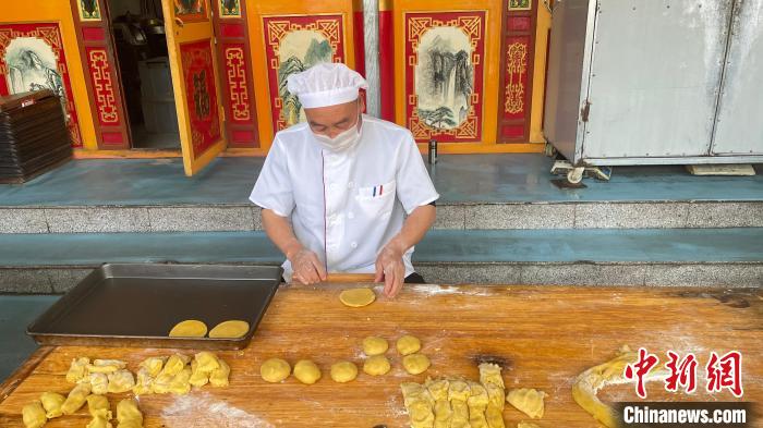張潤明正在制作豆面餅。 楊靜 攝