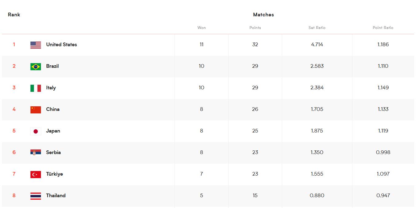世界女排聯賽總決賽八強產生 中國隊將遭遇意大利