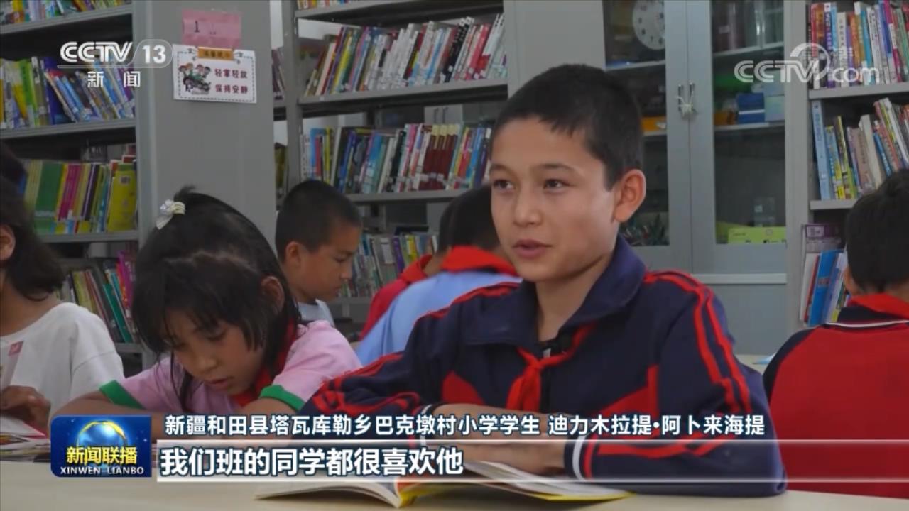 新疆和田縣塔瓦庫勒鄉巴克墩村小學學生 迪力木拉提·阿卜來海提:宋老師對我們很好,我們班的同學都很喜歡他。以后我要向宋老師學習,成為一個有用的人。
