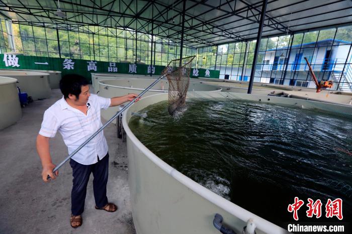 在四川省內江市資中縣銀山鎮金紫鋪村,300余畝的高位池養魚基地內波光粼粼、魚躍水面。一口口標準化高位池約3-5米深,采用科學技術養殖技術,一口高位池的畝產量可達到傳統魚塘的十幾倍。投苗、飼喂魚料、打掃衛生……成了基地內工作人員的“必修課”。