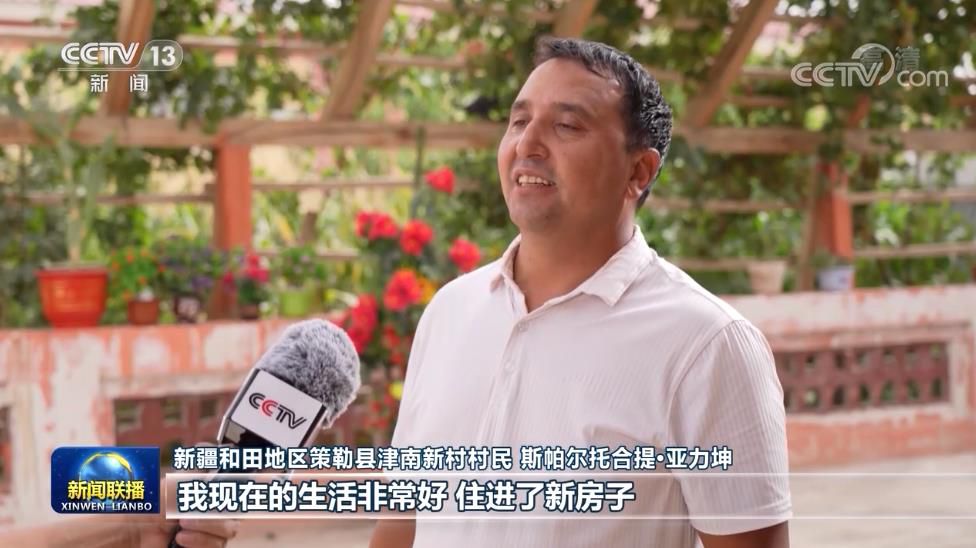 新疆和田地區策勒縣津南新村村民 斯帕爾托合提·亞力坤:我現在的生活非常好,住進了新房子,家里通水通電也有網絡,家里種了兩座大棚,我還當貨車司機配送貨物,我們家一年的收入10多萬元,我覺得生活很幸福,感恩黨、感恩總書記。