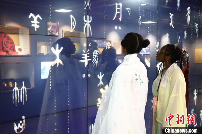 外國留學生通過觸摸電子屏幕體驗學習漢字文化、了解漢字的演變歷程?!∷逑?攝