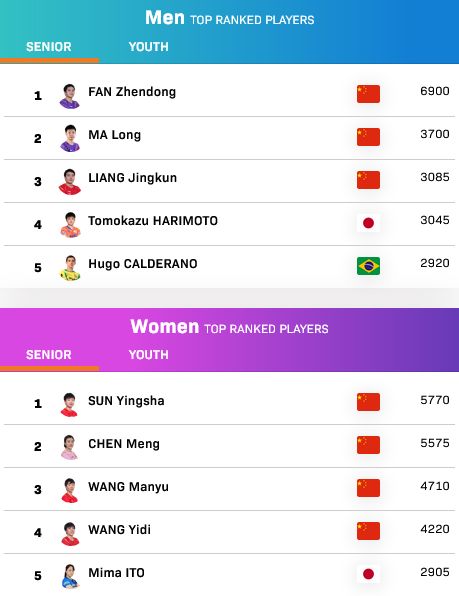 國際乒聯更新排名:樊振東、孫穎莎單打世界第一
