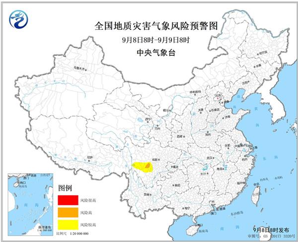 中新網9月8日電 據中央氣象臺網站消息,自然資源部與中國氣象局9月8日08時聯合發布地質災害氣象風險預警:預計,9月8日08時至9月9日08時,四川中西部發生地質災害的氣象風險較高(黃色預警);其中瀘定6.8級地震災區發生地質災害的氣象風險高(橙色預警)。請當地居民注意防范強降水引發的地質災害,尤其是地質災害隱患點附近區域。