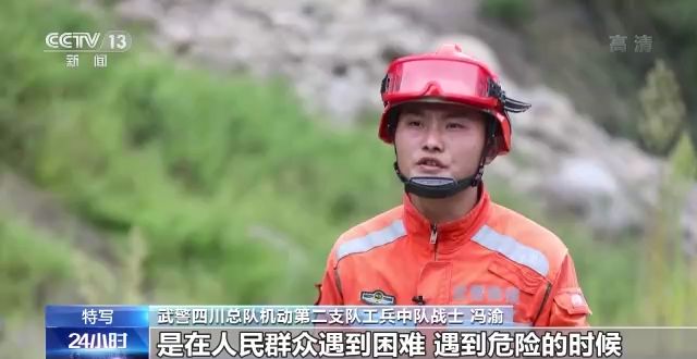 武警四川總隊機動第二支隊工兵中隊?wèi)?zhàn)士 馮渝:是在人民群眾遇到困難,遇到危險的時候,第一個沖鋒陷陣,第一個起到模范作用。