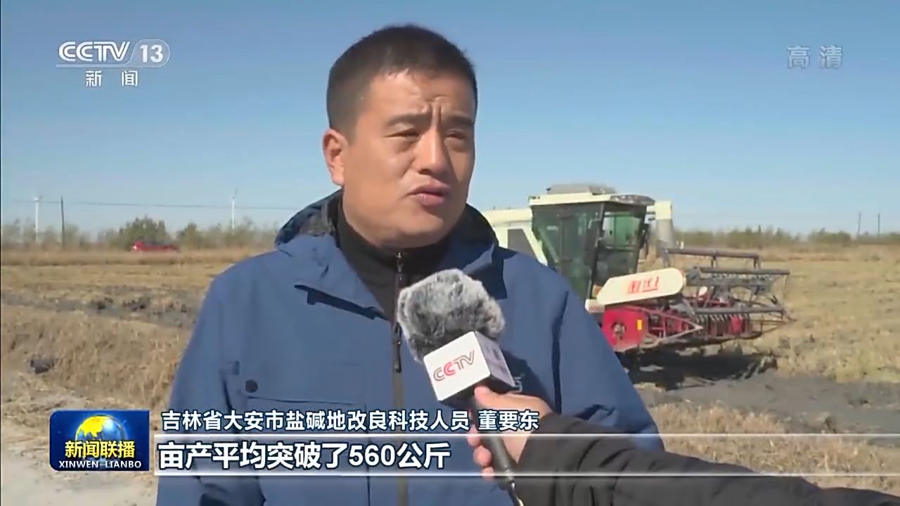 吉林省大安市鹽堿地改良科技人員 董要東:經過我們實打實收測產,畝產平均突破560公斤。