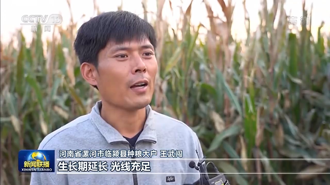 河南省漯河市臨潁縣種糧大戶 王武闖:比往年收獲晚一周左右,生長期延長,光線充足,千粒重增加,每畝(比去年)增產50至60公斤左右。