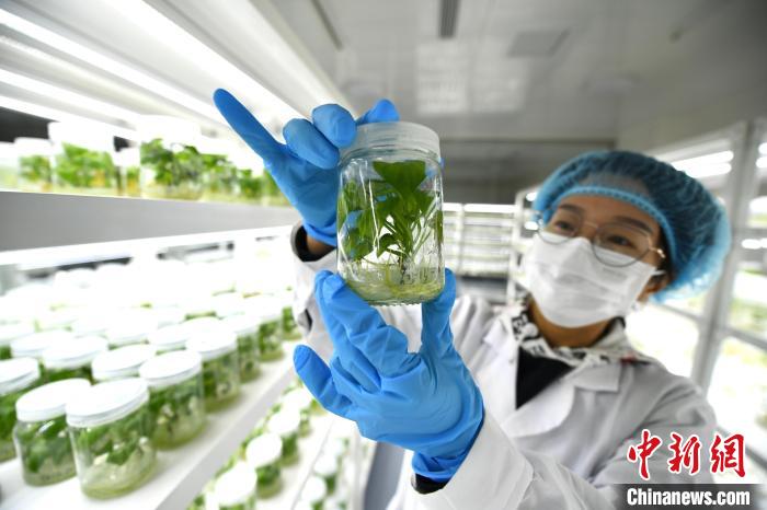 在河北中薯農(nóng)業(yè)科技集團股份有限公司甘薯脫毒組培中心,技術(shù)員查看脫毒苗生長情況?!∴嵆孔?攝