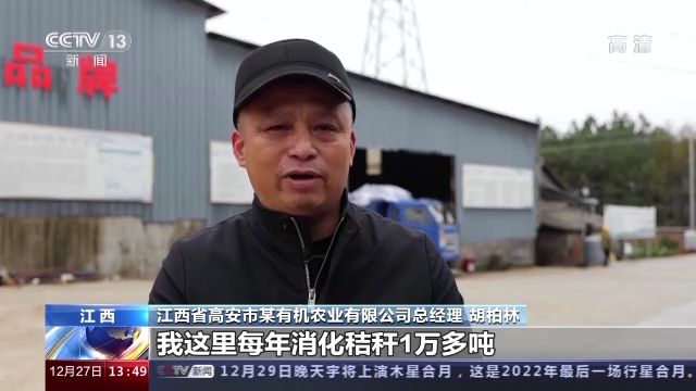 江西省高安市某有機農業有限公司總經理 胡柏林:我這里每年消化秸稈1萬多噸,用來做有機肥發酵。肥料現在出貨量每天是十來車,將近達到200多噸(每天)。