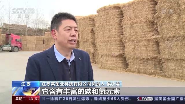 江蘇某菌業科技有限公司負責人 侯小君:麥秸稈是我們種植雙孢菇的基本原料,它含有豐富的碳和氮元素,我們把它和雞糞混合攪拌之后,培養出我們種植雙孢菇的基料。我們現在年產雙孢菇大概4萬噸,一年消耗秸稈用料5.7萬噸左右。