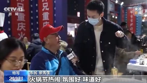 市民 余先生:火鍋節熱鬧,氛圍好,味道好,新年大吉,紅紅火火,一家人吃火鍋。