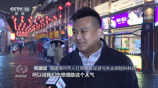福建漳州市人社局就業促進與失業保險科科長陳國斌:“古城北廣場在漳州是比較熱鬧的一個地方,我們也想借助這個人氣來帶動就業工作,為大家提供一個輕松、平緩、舒適的平臺。我們做了一個調研,反饋出來的企業用工數總體跟往年相比增加5%到10%。”