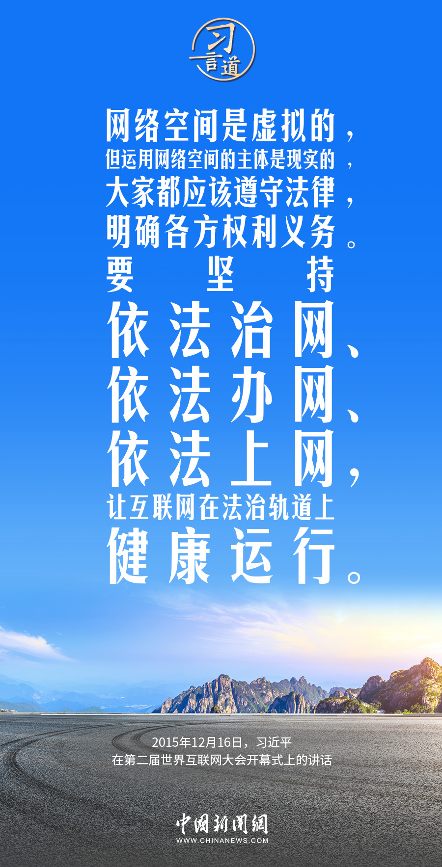 互聯網不是法外之地。習近平總書記高度重視網絡空間法治化建設,多次強調依法治網,營造風清氣正的網絡空間。