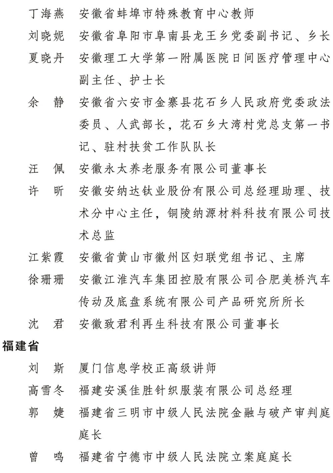 2022年度全國三八紅旗手標兵、全國三八紅旗手、全國三八紅旗集體全名單公布